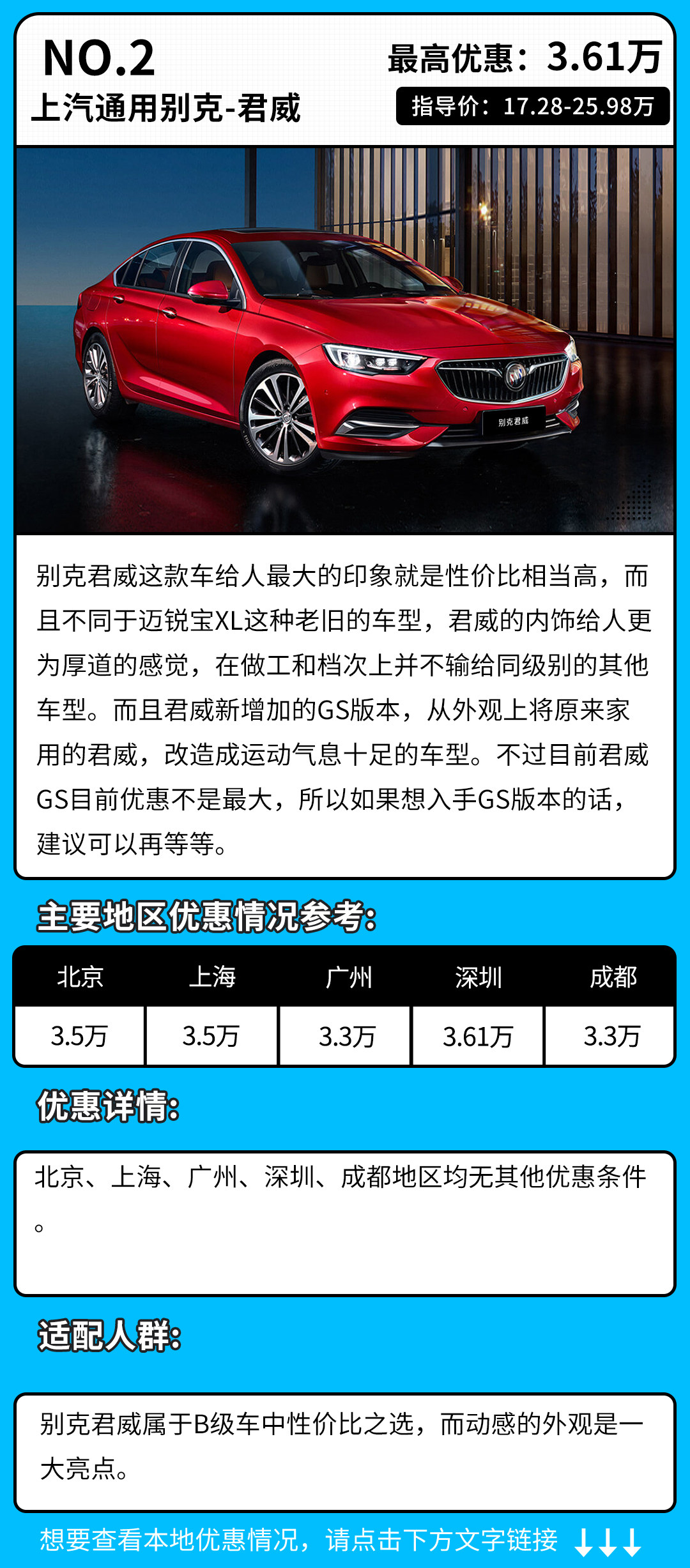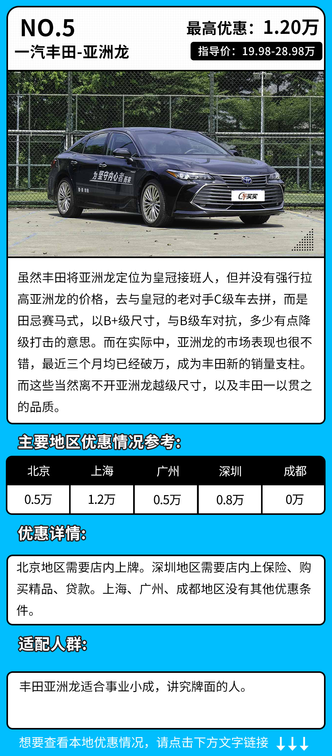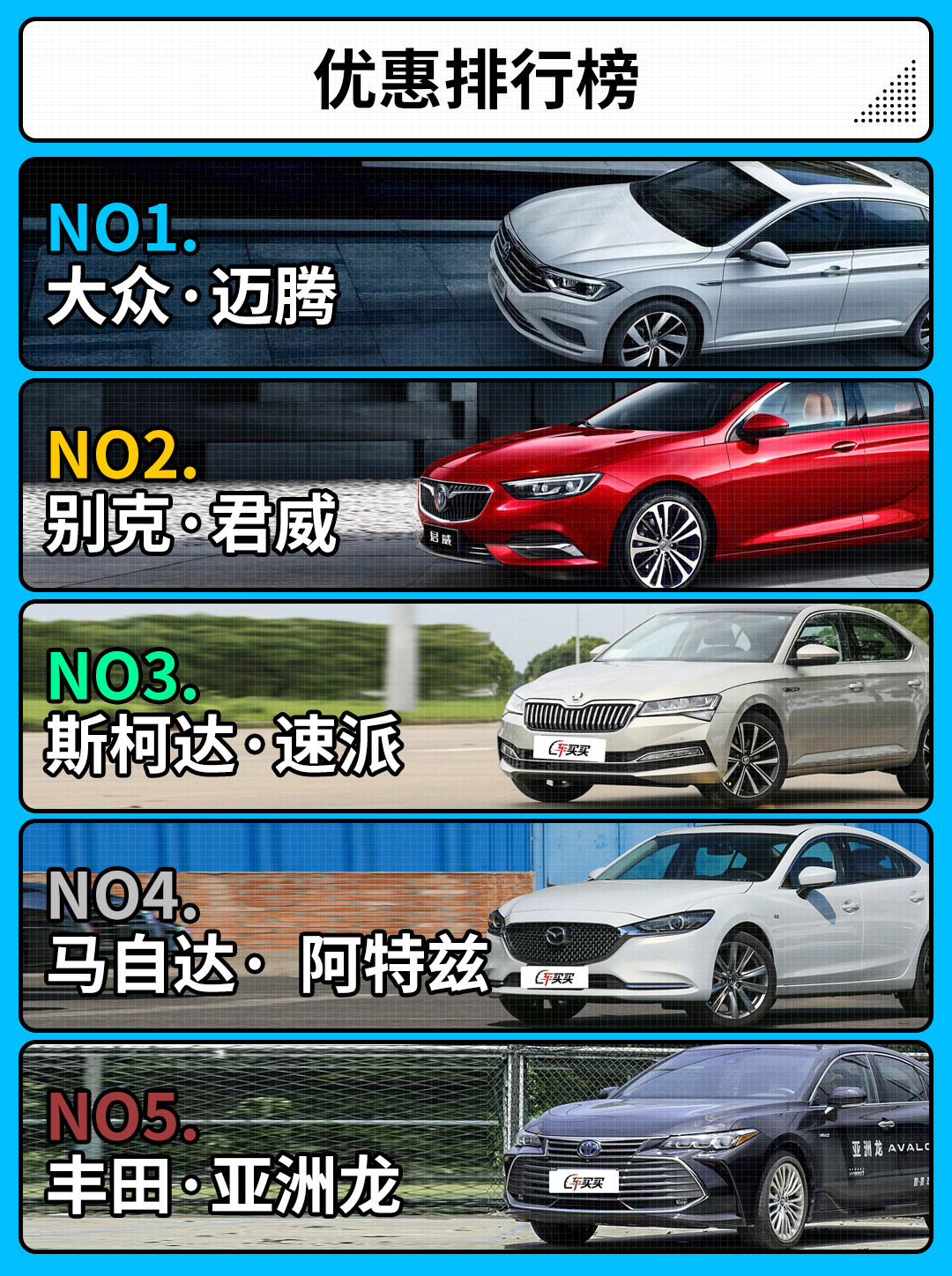 从上面的优惠也可以看得出来,主流B级车市场的优惠还是相当给力的。不仅像迈腾、君威这种老牌车型,在价格上让利颇多,借以提升自己的竞争力;哪怕是上市不久的亚洲龙,同样也有超过1万的优惠。