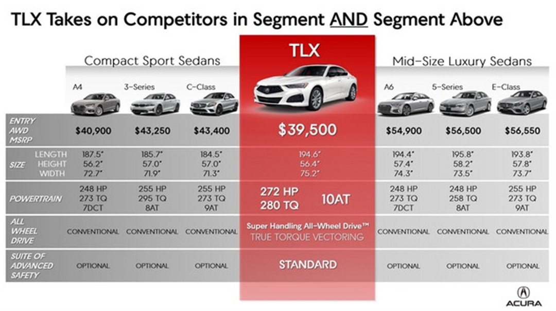 近日,讴歌宣布2021款讴歌TLX即将在9月28日在美交付,据讴歌官方称:“全新TLX将是这品牌35年来最便捷、功能最全的轿车”。在动力系统上,新车将提供2.0T以及3.0T发动机,并且提供两驱、四驱供消费者选择。据悉,讴歌TLX 2.0T车型起售价为37500美元,相比于老款的3.5L V6版本还要贵1300美元,从数据上看,新的2.0T发动机比老款3.5L V6发动机要更强,马力增加66Ps,扭矩增加98N·m。而2.0T四驱版本起售价为39500美元。另外,全新讴歌TLX Type S将搭载3.0T V6发动机,并配备四轮驱动系统,起售价为50000美元,价格并不低,预计在明年春季到来。至于未来什么时候来到国内呢?目前尚未知道。