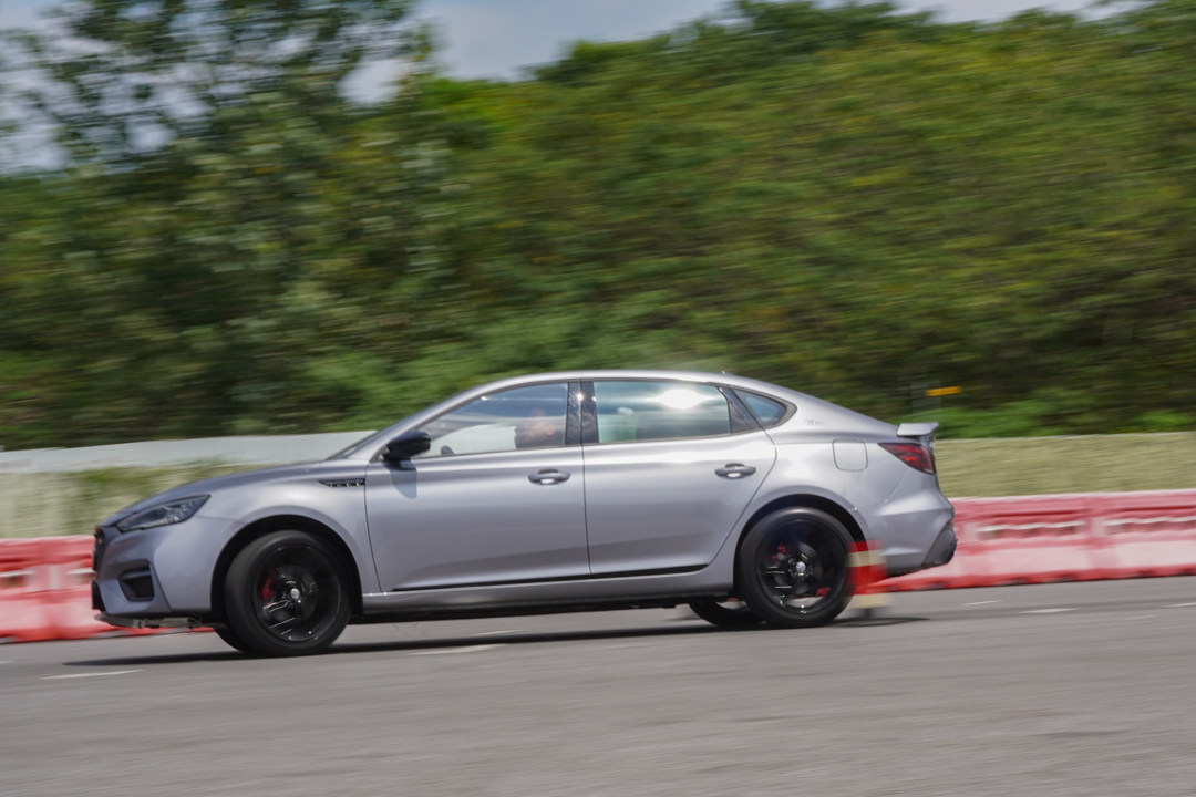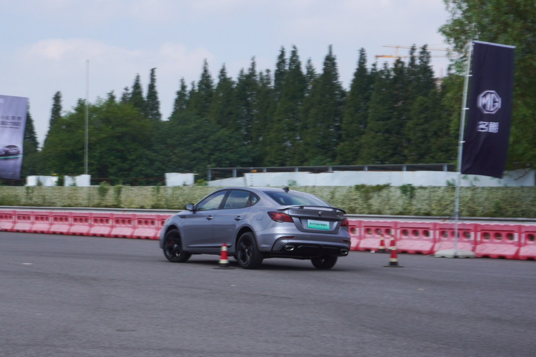 在简单的金卡纳赛道中,名爵6 PHEV最大的感受就是转向非常轻盈且容易操控。为什么这么说呢?首先在绕桩的过程中,车辆悬架的表现相当不错,对于车辆的姿态以及侧倾始终比较到位,并不会明显感受到悬挂压缩导致的不安分感,当然考虑到日常舒适性所以悬挂并没有很硬朗。同时前面也介绍到由于采用了一体式运动座椅的关系,所以在绕桩的时候座椅能够把我牢牢的“捆”在位置上,包裹感有了。