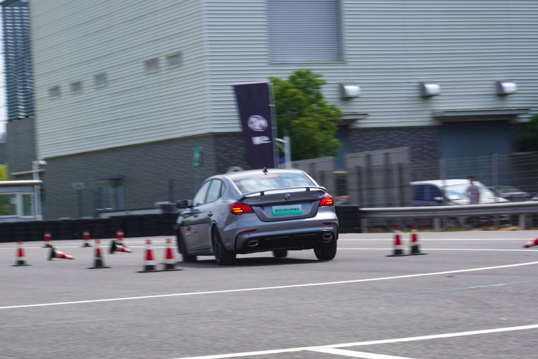 相比一些外观运动、但驾驶体验很舒适的车型来说,第三代MG6 PHEV确实能够做到名副其实。特别在金卡纳赛道挑战仲更能感受到,可能有人会问了,什么是金卡纳?金卡纳赛道挑战相当考验车辆的操控性能,车辆将在各种弯道角度中绕桩并进行麋鹿测试,非常的具有挑战性。