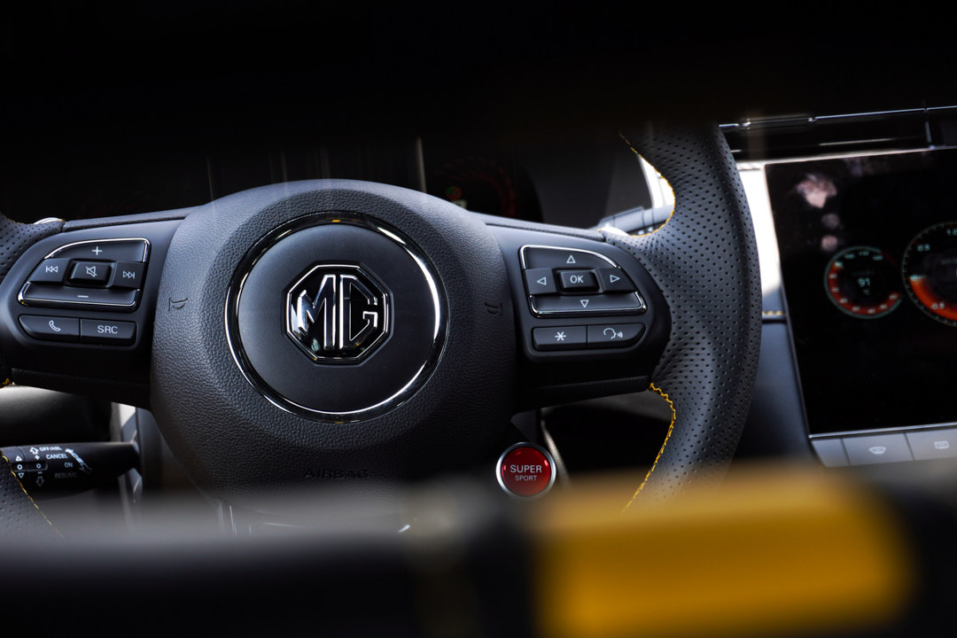 手机无线充电,12.3英寸的全液晶仪表,黄皮质内饰这些都不是买买君为之兴奋的,最兴奋的莫过于方向盘上新加入的SUPER SPORT按键,并且采用非常显眼的红色按键设计,当然燃油版车型也是有着同样的设计。那这按键是车辆启动按钮?不,这颗按键能激发你的驾驶欲望,有什么作用待会儿试驾环节再说。