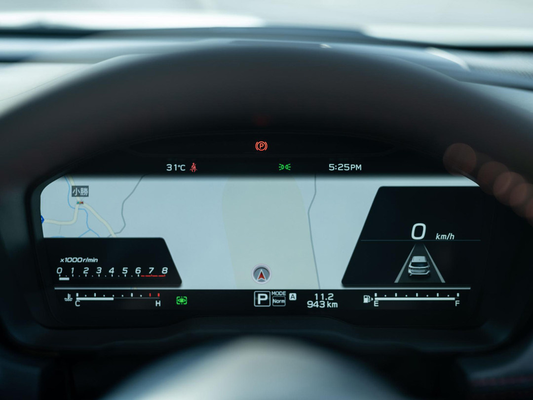 12.3英寸的全液晶仪表是全新LEVORG的亮点,仪表UI可以根据驾驶者需求的不同切换至不同的界面,例如可以切换至导航模式,地图会占据显示屏大部分面积,让驾驶员能够轻松看到自己驾驶路线。