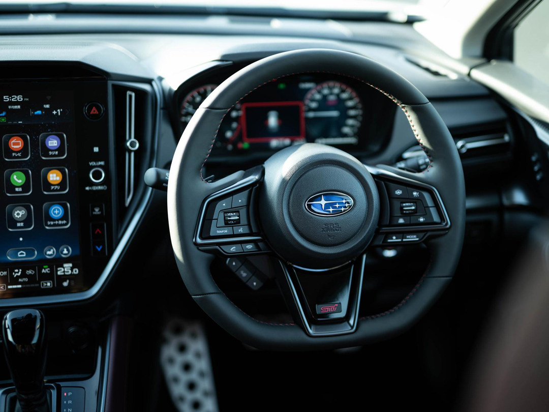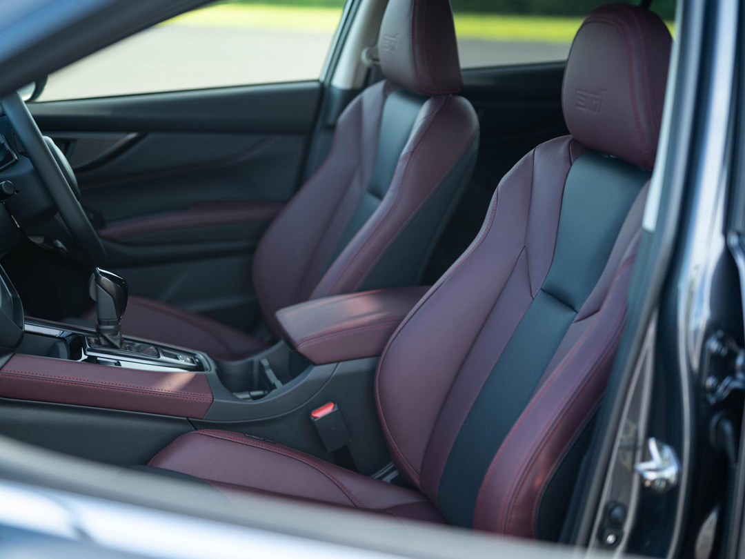 此外,相比起普通版车型,STI Sport车型会使用红黑双色拼色的设计,并且在中控台会使用Alcantara材料装饰,同时在方向盘上加入了STI徽章。不过,笔者个人感觉还是全黑的内饰会更加耐看一些,而且这套红内饰的颜色比较暗哑,视觉效果不算出色。