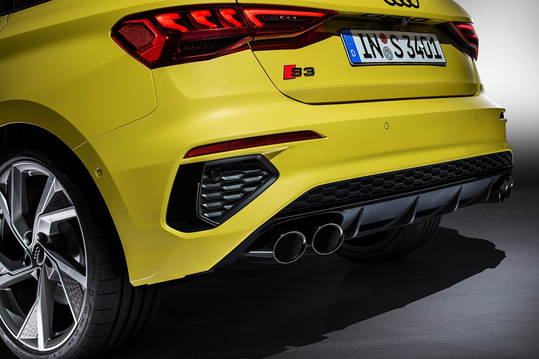 不过值得注意的一个细节是,这一代S3不再是“银耳朵”,而是亮黑色;三厢版的尾部也加入了碳纤维的小型扰流板。