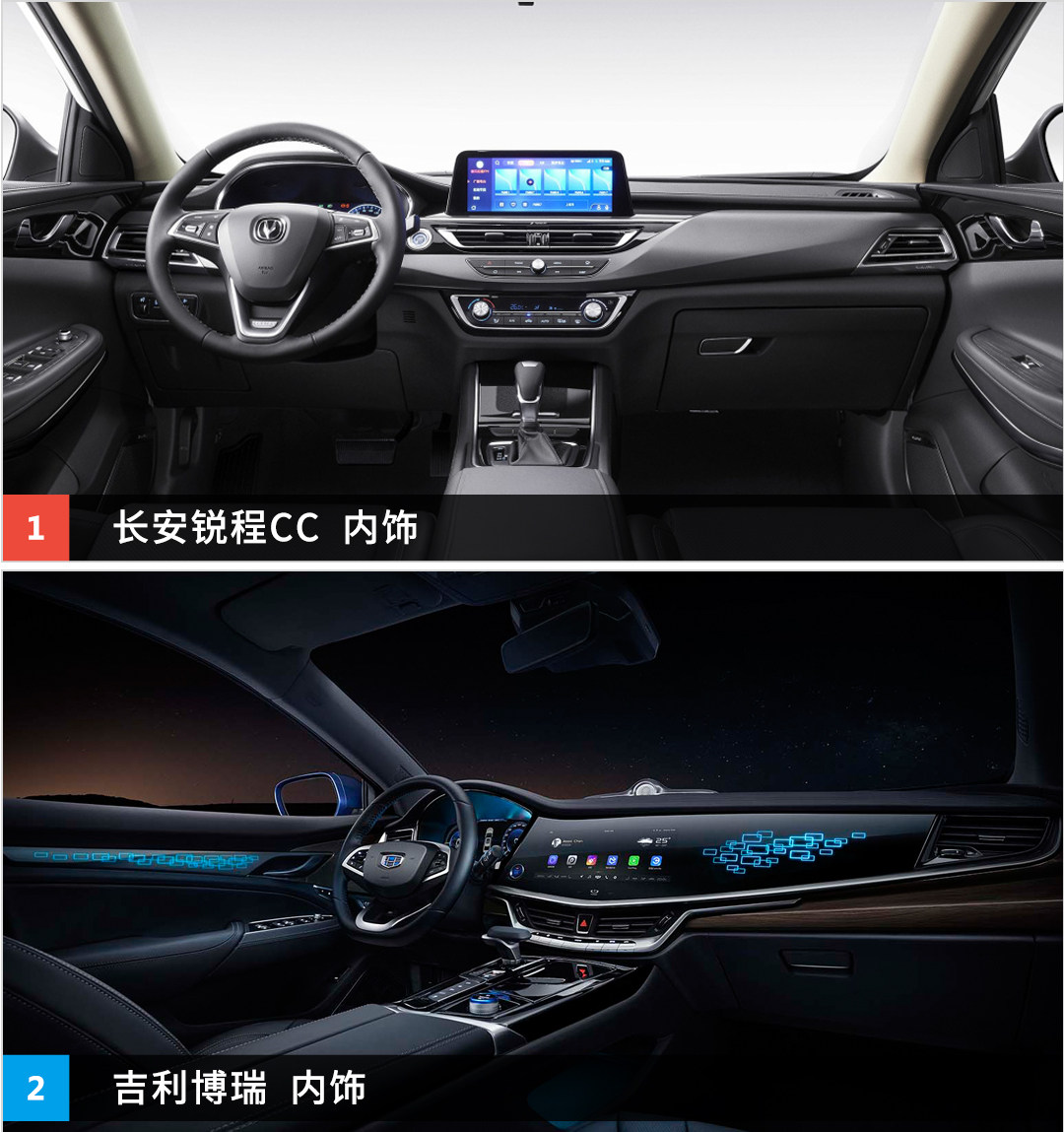 两者在内饰布局设计上颇有共同之处,那就是科技感较强,全液晶仪表,中控大屏,抬头显示等科技性感官体验都能给到你,而且内饰设计具有很强的品牌特色,长安锐程CC的内饰布局比较“中规中矩”,而博瑞的内饰设计则更显品牌特色。