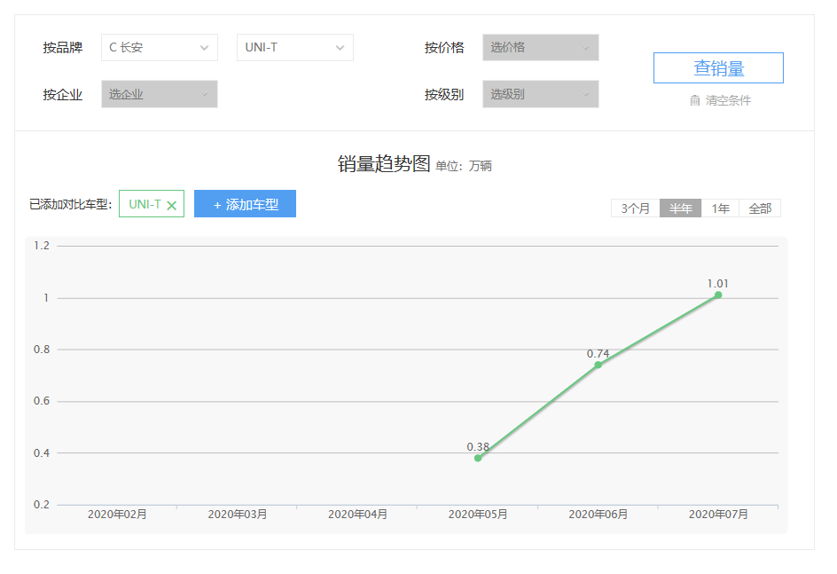 在讨论长安UNI-T哪个版本性价比最高之前,我们先来看看长安UNI-T是一款怎样的车型。如果对销量比较关注的话,长安UNI-T在上市第三个月,也就是7月销量已经过万,事实上长安对于UNI-T的打造,就是冲着爆款去的。