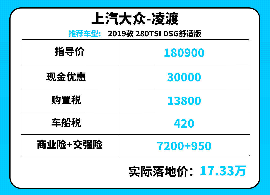 但如今凌渡凭借3万元的现金优惠,在普遍为综合优惠的大众家族中展现出了更高的可买性。以1.4T高功率版的舒适版车型为例,虽然指导价高达18.09万,但优惠后的裸车价仅15.09万,加上保险和税费后车辆售价仅17.33万,比标定的指导价更低。对于很多喜欢驾驶,且对动力有一定追求的年轻消费者而言,比起朗逸,牺牲一点空间换取驾驶质感升级的凌渡反倒是更值得一看的产品。