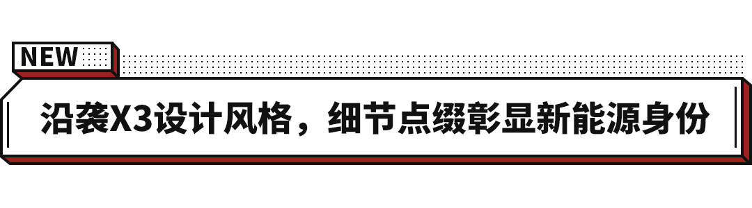 侧面部分,也基本保留了X3车型的风格,以简单柔顺的线条勾勒出车身轮廓,视觉效果表现为壮硕有力。在保留传统门把手的同时在车门下方引入了一条贯穿式前后门板的蓝色饰板,凸显了它的新能源车身份。