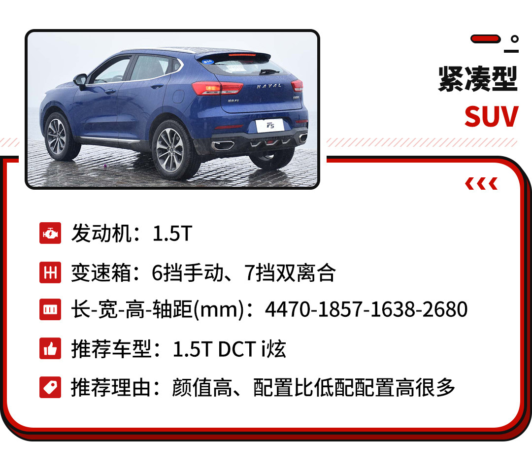 哈弗也是跟比亚迪一样,主打设计配置和使用体验的品牌,F5是更加年轻、运动的一个车型,为年轻消费者而来,这款哈弗F5的起步价很诱人,8万不到,但是入门版的车型真心不推荐。