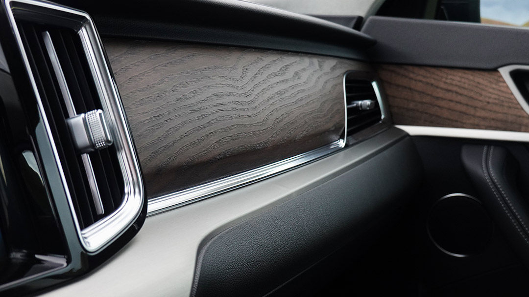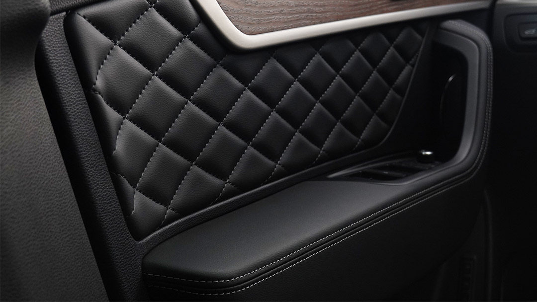 大面积的木质、铝制装饰严丝合缝,并且车内的每一道缝线摸起来都非常顺滑。