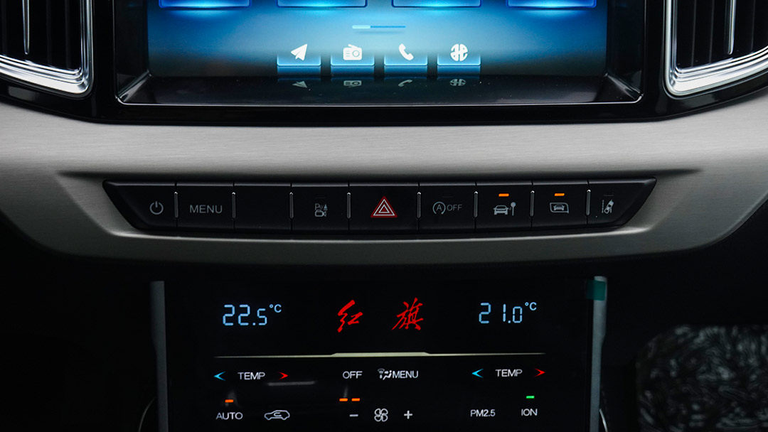 主驾驶座椅10向电动调节,副驾驶座椅6向电动调节,还有红旗汽车标志性的老板键。