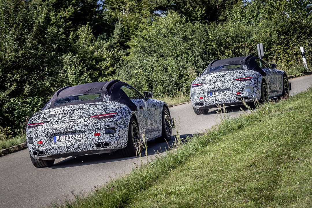 而根据伪装车的顶部细节,可见新车有可能会放弃上一代车型采用的折叠硬顶设计,回归经典的折叠软顶设计;软顶结构将会让敞篷机构变得更加简洁,顶棚开合速度更快且不会像折叠硬顶一样占用太多的尾厢空间;而更重要的是,折叠软顶相比于折叠硬顶在重量控制方面更有优势,因此主打高性能的敞篷跑车大多采用这种设计。