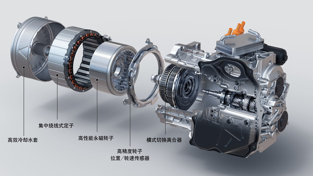 作为更为深度且接近于纯电系统的PHEV系统,帕萨特PHEV采用P2结构,驱动电机位于发动机和齿轮组之间。配合上拥有三组离合器的DQ400e6速混动双离合变速箱(一组离合器用于发动机和驱动电机之间的耦合,另外两组与齿轮箱构成双离合变速箱),不仅能够精确控制动力系统和变速系统,还能通过换挡的间隙进行电机的减扭然后与发动机结合的方法,将转速波动限制在一个非常有限的范围内,让动力的切换几乎无法被察觉。