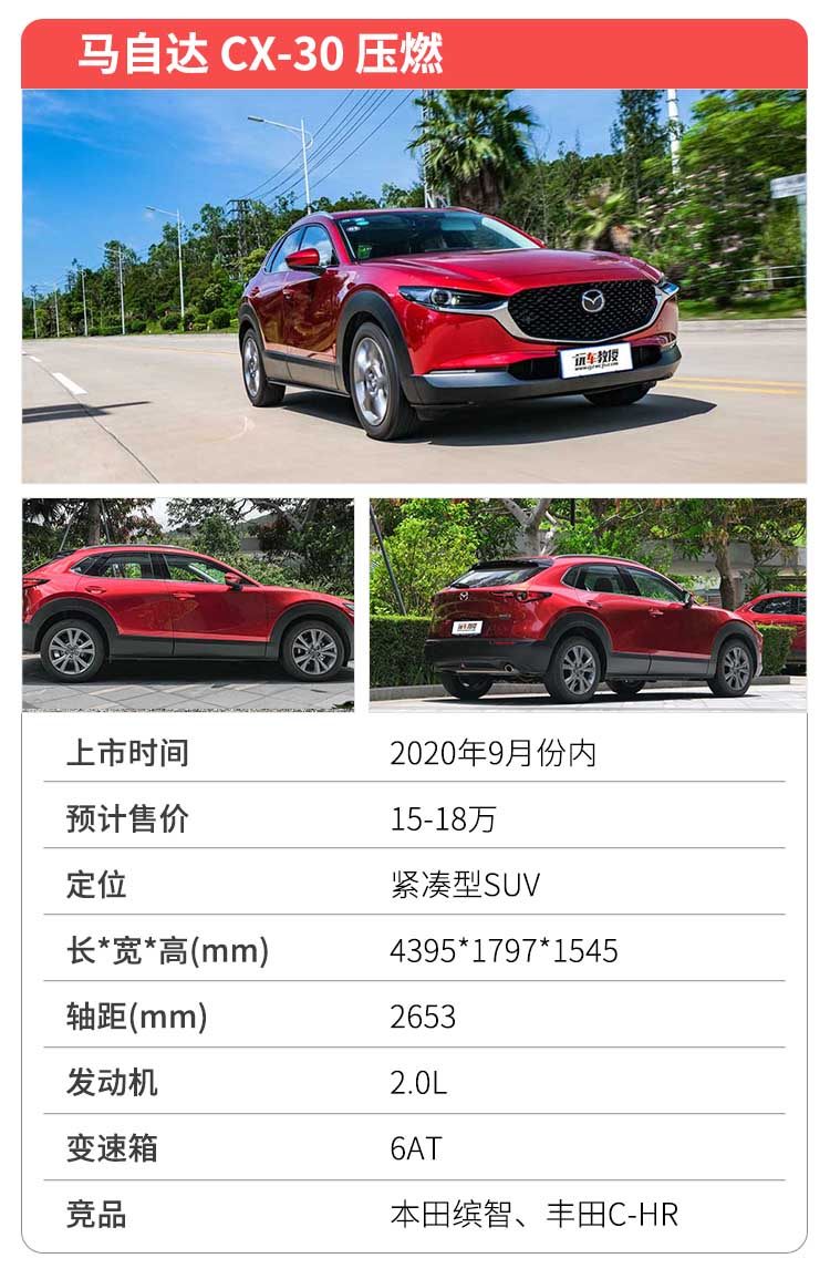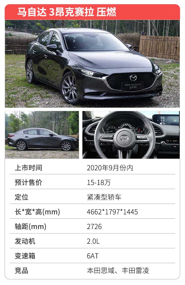 搭载了压燃技术的马自达3 昂克赛拉以及CX-30,终于要上市销售了,新车将搭载最新的Skyactiv-X发动机,最大功率180马力,相比如今2.0L发动机最大功率提升了22马力,也让它们能进入细分市场的一流水平,起码,遇到本田思域这种对手再不需要"怯“,论动力也不会输,再加上本身注重操控的调校,本田思域这同价位最佳"运动车“或许要退位让贤了。