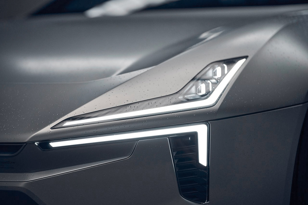 传统封闭进气格栅被取消,改用极星特有集成了SmartZone系统的透明面板,“引擎盖”两侧的肌肉线条苍劲有力,两侧标志性的“雷神之锤”LED大灯炯炯有神,上下分离设计,极具未来感。