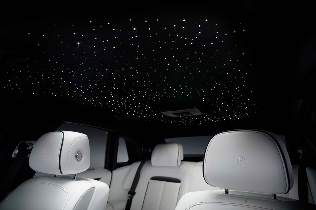 秉承全新古思特“以约驭博”的设计理念,劳斯莱斯Bespoke高级定制部门并未采用简单常规的屏幕技术,而是研发出纯粹奢华的创新技术以实现这款独特的星光仪表面板设计。星光仪表面板的发光效果源自152支LED灯源,每个LED灯的颜色都与车内时钟及仪表盘完美契合。为使“Ghost”字标发光效果均衡且柔和至极,全新古思特采用了厚度为2毫米的光导,其表面有90,000余个激光蚀刻点。该光导不仅可以将散发的光线均匀分布,还能产生闪烁效果,星光仪表面板的光点与星光顶的闪烁星光互相呼应,共同在车内打造出梦幻氛围。