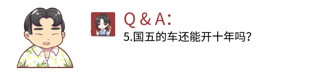 事实上这个问题有些杞人忧天了,虽然目前还没有具体的国家规定,但从过往的经验来看,国V车开十年是没有太大问题的。