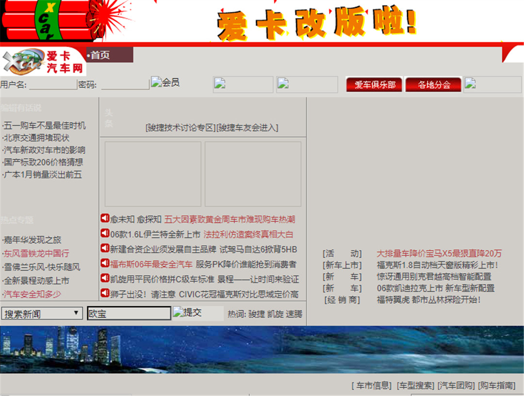 ▲图为2005年爱卡汽车社区主页截图,青涩但内容满满