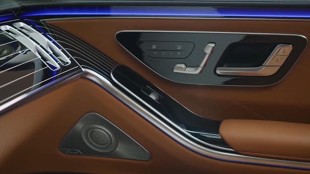 车门之后,是那套同样“熟悉”的全新内饰设计语言;在新车亮相前,奔驰就已经通过发布官方预告视频与图片的方式向我们提前揭示了新一代S级内饰的重要升级项目;因此当新车发布后,正式曝光的内饰设计也没有带来太多的惊喜。在此前的各类预告素材中,中控台上宽大的曲面饰板曾被吐槽为奔驰“设计不走心”的主要“罪证”之一,因为它看起来实在太简单粗糙了。然而在正式发布的首批官图中,教授发现这一组中控台饰板提供多种纹理选择,在木纹、横纹钢琴漆、竖纹钢琴漆等配色衬托下,新一代S级的内饰就像是一艘豪华游艇的驾驶舱,大气、优雅。