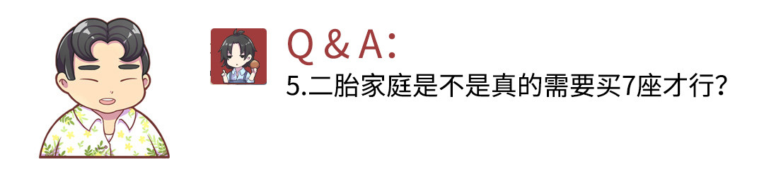 首先说答案,二胎家庭是真的需要买7座车才行,以中国目前的家庭组成来看,生下二胎绝大多数必须是需要男女一方的父母来进行照顾。所以算算人头,夫妻加上两个孩子就是四个人,如果周末带上一家子出去旅行,你是愿意一家子挤在一辆五座车内,还是7座车内其乐融融?