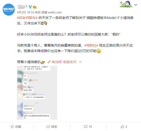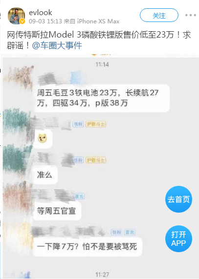 而这都还不是引起网友们剧烈热议的到导火线,引爆点其实在于有位网友提到的:“国产Model 3磷酸铁锂电池版车型售价23万元起售”的消息。