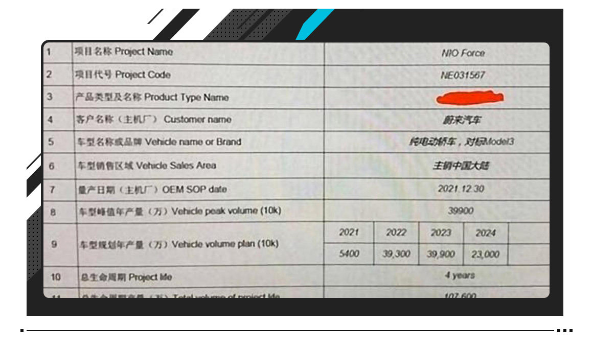 从网上流传的一张图显示,一款蔚来内部项目代号为NE031567的车型将会在年底前上市发售。据知情人士透露,这款车未来将会被命名为蔚来EE7,对标车型是特斯拉Model 3。图片结合着NIO Day之前高层的放话,这款轿车年底亮相,甚至是预售的可能非常大。