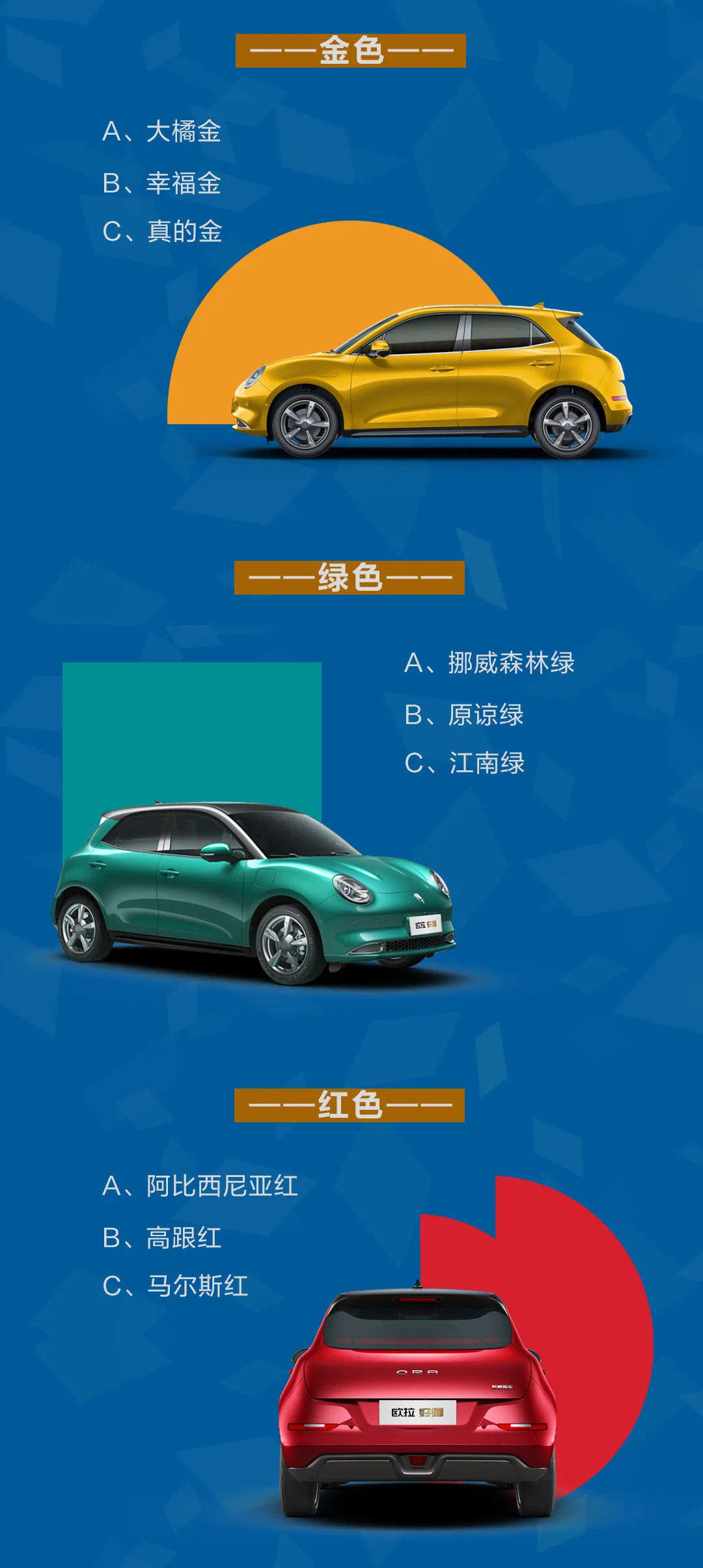 日前,我们从欧拉汽车官方微信公众号处了解到,旗下全新小型SUV——欧拉好猫正式开启车身颜色征名活动。该车此前已于长城汽车泰州工厂正式下线,预计将在今年10月上市。