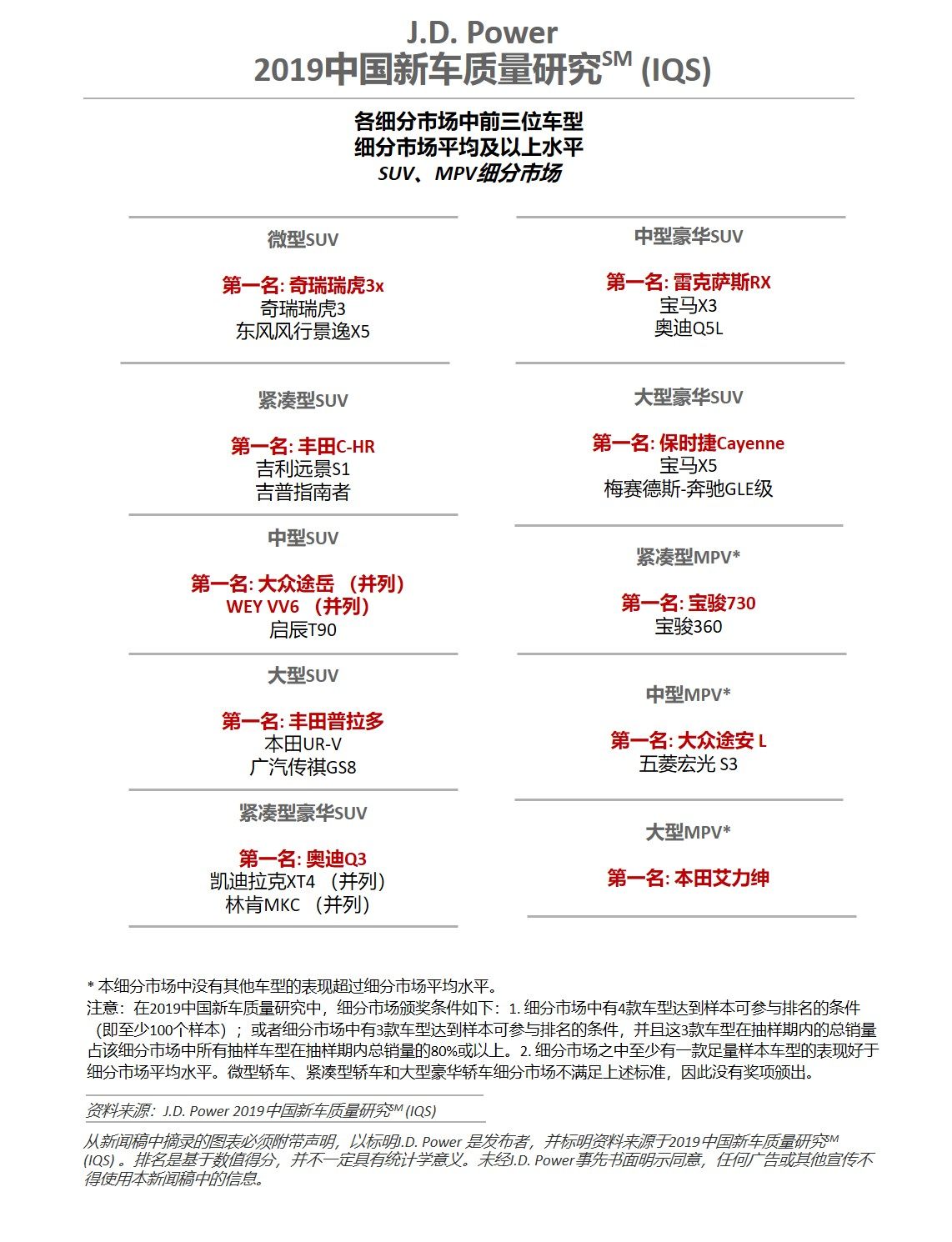 而在J.D. Power:2019中国新车质量研究中,我们欣喜的看到很多国产车型力压合资车型,成为各自细分市场排名靠前的车型。