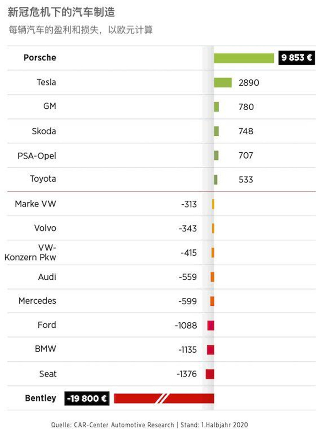 那就是:体量大所承担的损失就会更大;德国杜伊斯堡汽车研究中心在前段时间,公布了一份调查报告,这份报告显示,在今年上半年的时间里,各大车企在全球肆虐的疫情中遭受着很大的压力,不少国际车企在其中都受到了不小的影响。