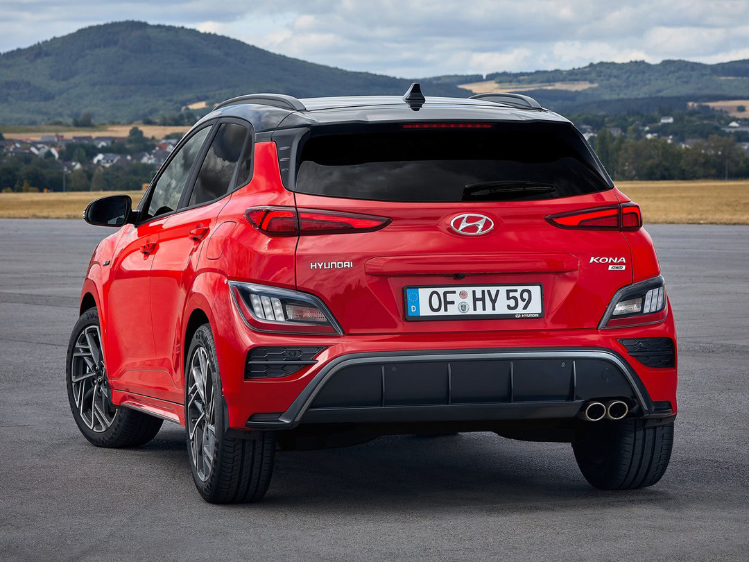 KONA尾部同样使用分体式设计,造型跟头灯相呼应,灯腔内部也进行了重新设计。普通版车型由后轮眉延伸而来的黑色保险杠跟车头呼应,能够提高车辆视觉重心之余,还能减少车漆的剐蹭。N Line款车型则为了运动氛围的营造,将排气管外露,同时后杠还拥有类似扰流的设计。