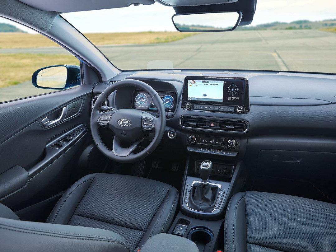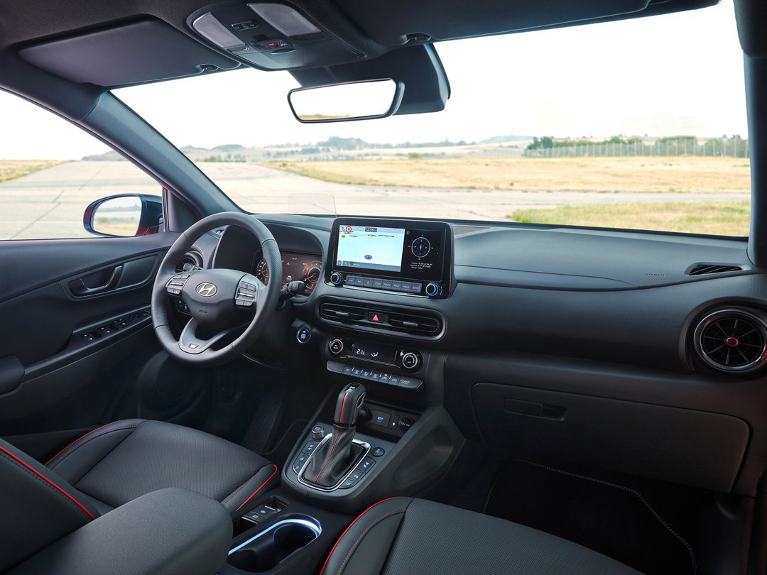 新款现代KONA的内饰基本维持了现款车型的造型和布局。细节上,新款车型使用了更大尺寸的中控屏幕,将屏幕尺寸增大至10.25英寸,同时车机系统能够支持带音频视频的导航系统,支持分屏显示。