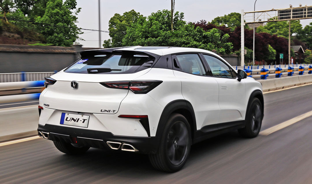 相比之下,车尾的设计则显得中规中矩,但像是扰流板、散热口以及双边四出排气这些标志着运动化的设计元素,UNI-T都给配齐了。而车辆内饰则是长安家族近年来比较常见的布局设计,但同时也不乏一些一体式运动座椅等元素的融入。