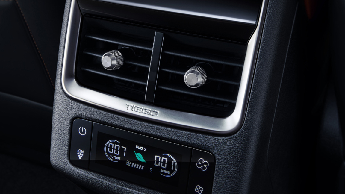 新车还配有后排出风口,并且支持信息显示以及提供电源键、风量调节等功能按键。