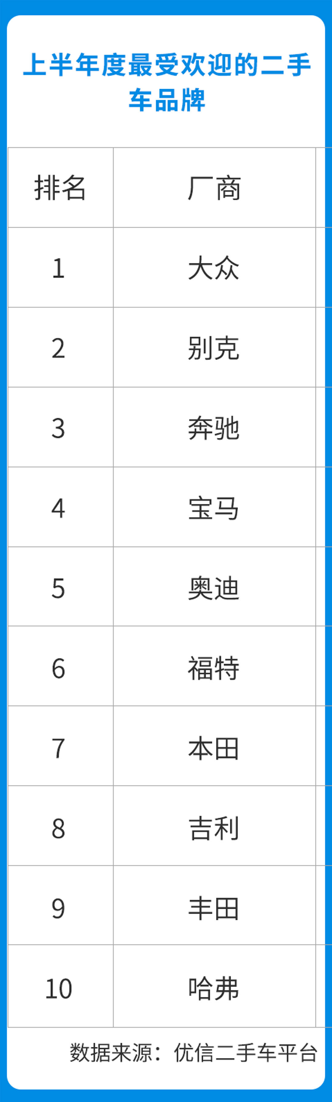 近日由优信二手车大数据平台发布的《2020第一季度二手车消费报告》,统计出了国内最受二手车品牌,由于数据是上半年的,加上是由单一平台发布的数据,可参考性不是很高,但仍具有可读性和借鉴意义。