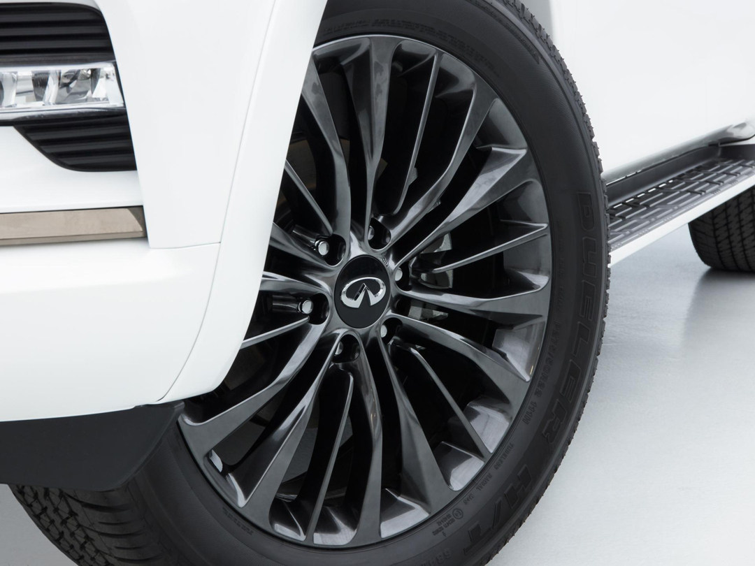 22英寸的超大轮毂在其他车辆面前早已经是“巨人足”,但装在QX80上只能说刚刚好,可见其车身的壮实程度。
