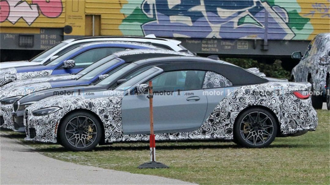 近日,我们从海外媒体处获取到一组全新宝马M4 Cabrio(敞篷版)车型的谍照。从谍照中我们可以看到,与普通双门版车型相比,敞篷版本整体的设计并没有太多的改变,不过,在前后翼子板位置,敞篷版车型还是带有伪装,并且,宽度也较于普通版本有所不同,预计在性能上会更强。全新M4敞篷版采用了软顶敞篷的结构,这与老款车型上截然不同,其好处在于能够获得更轻的车重,以及节省车内空间,不好的地方在于看上去与车身的整体性一般。另外,敞篷版车型还配备了一款新的轮毂样式,这与M4普通版上的黑轮毂有所不同。动力系统上,敞篷版车型预计与硬顶版车型相同,同样是搭载3.0T双涡轮增压发动机,最大马力473Ps,而雷霆版车型最大马力达到503Ps。目前,还不确定敞篷版车型是否会与M3和M4于9月23日到来,但从进度上看,应该也不会等太久。(图源于motor1)