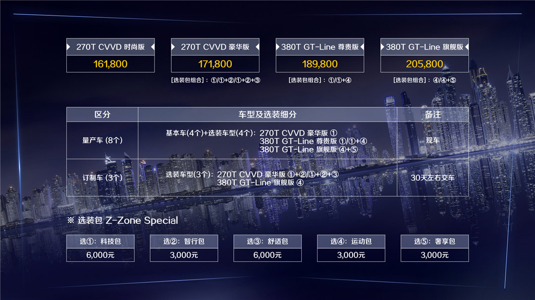 而从选装包的价格来看,K5凯酷就显得更加有诱惑力了,上述三个包的总价不过1.5万元,却能让售价17.18万元的270T车型获得不弱于380T顶配车型的配置。不过需要注意的是,从官方给出的现车清单中可以看到,目前有现车的车型只有8种,分别是4款基本车型,以及270T豪华版&豪华包+科技包车型、380T尊贵版&科技包/科技包+奢享包车型以及380T旗舰版&运动包+奢享包车型。其他自由搭配车型就需要30天的定车周期了,急需用车的消费者需留意。