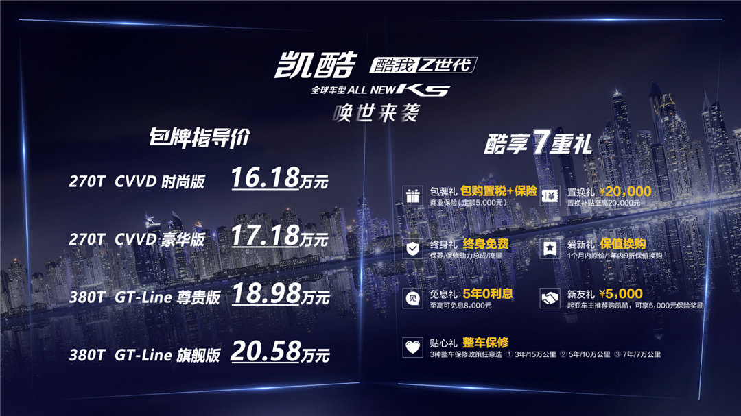 也就是说本次起亚K5凯酷的真实售价是在14-18万元左右,这个价位的合资中型轿车已然不多;更值得注意的是,K5凯酷还享有终身免费政策【保养/动力总成保修/车载流量】,从价格上来说就有了不小的吸引力。