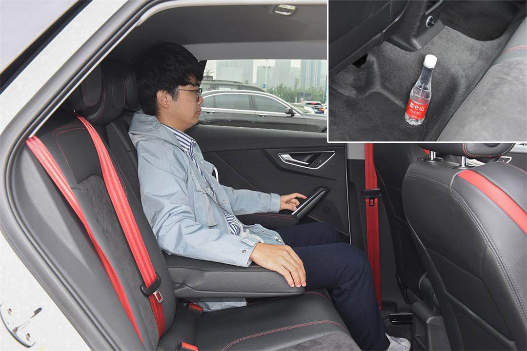相较海外版的奥迪Q2,国产版Q2L在进入中国市场时也针对了国内消费者的喜好进行了优化升级,其中最明显的就是轴距加长。都说豪车引进必加长,为了满足国内消费者对于车辆乘坐空间更高的需求,奥迪Q2L相较海外标轴版增加了28mm,轴距的增加对于后排腿部空间还是带来了一定加分,不过后排地板中央凸起较高,对于中间位置的乘客乘坐舒适性还是有着不小的影响。
