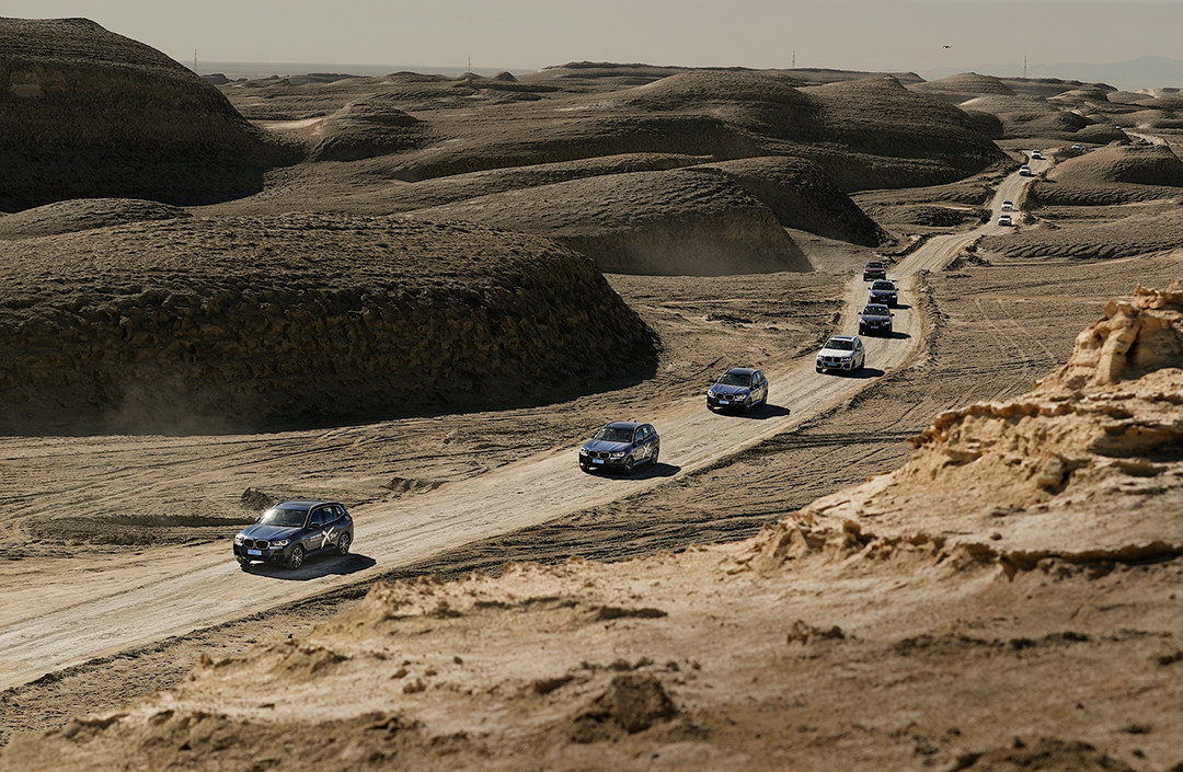 搓板路,碎石路,软沙地,一压就碎的砂岩......在这里就别想什么柏油水泥,有的只有漫天黄沙和无尽颠簸。手机没信号陷车叫人帮忙不现实,你能相信的只有自己的驾驶技术和xDrive的电控多片离合中央差速器,其可实现前后轴0-100%的动力分配。按领队说的就是:这路况还好吧,没那么极限,注意下轮胎就行,其它随便开。