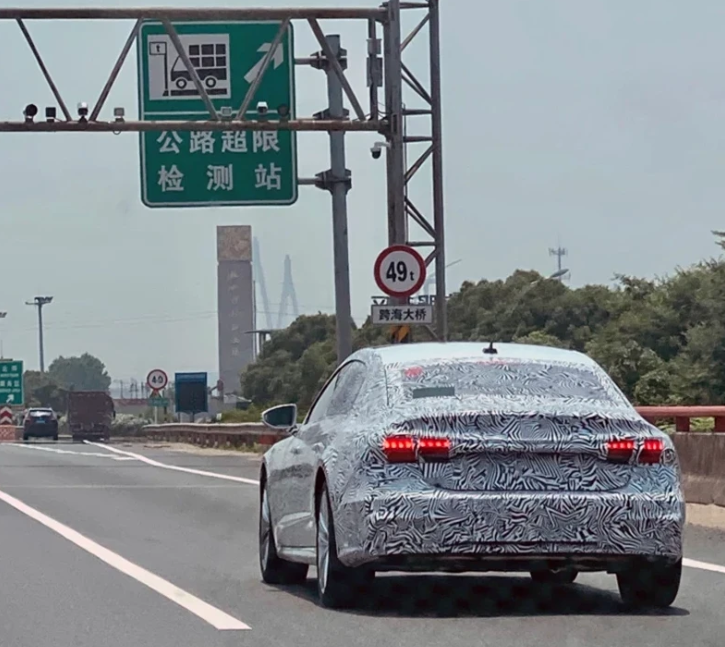 从此前曝光的路试谍照来看,国产A7L或将沿用现款奥迪A7的设计风格,溜背车尾、无框车门、贯穿式尾灯等元素都将得以保留。另外新车在轴距上将有所加长,参考进口版A7的车身尺寸(4976/1908/1414mm,轴距2928mm),所以未来加长后的国产A7L轴距可能超过3米,车身可能超5米。