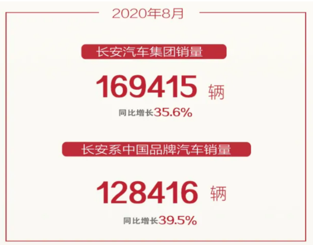 继7月同比增长38.5%之后,8月份长安汽车集团销量再次实现35.6%的增长。