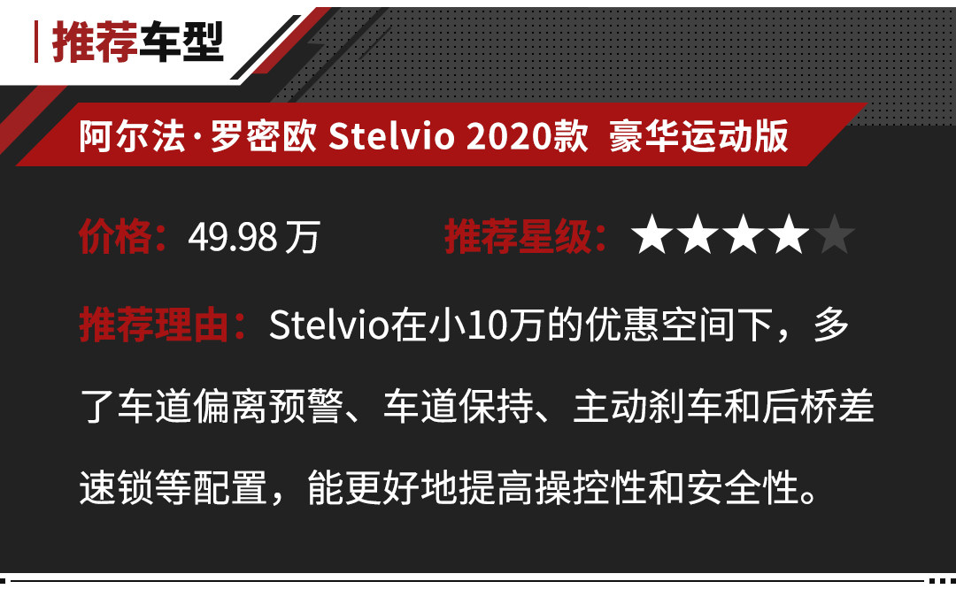 恰逢中国客户对SUV情有独钟,阿尔法·罗密欧的Stelvio车型正好“专业对口”,只不过比普通家用SUV更加强调性能和操控的它,也为其增加了一丝运动之车的卖点。