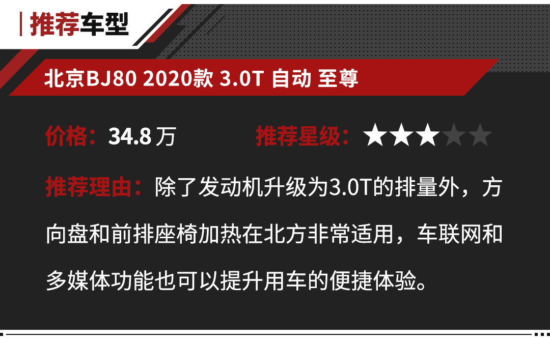 不过在北京硬派越野车里,不管是BJ40还是F40,其造型都很复古,风格也偏硬朗,但在越野性能等综合素质上,拥有军工背景的北汽也为其注入了造车经验和技术实力。