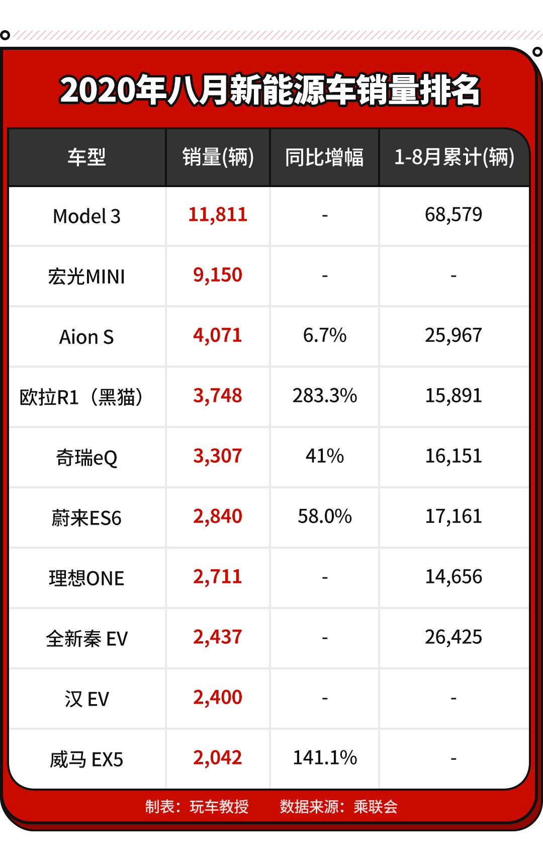 此外,8月电动车高低两端趋势明显,A00级销量2.5万辆,份额提升到纯电动的31%,上汽通用五菱1.83万辆、比亚迪1.43万辆、特斯拉中国1.18万辆分列前三。普通混合动力车批发2.83万辆,同比去年8月增长24%。