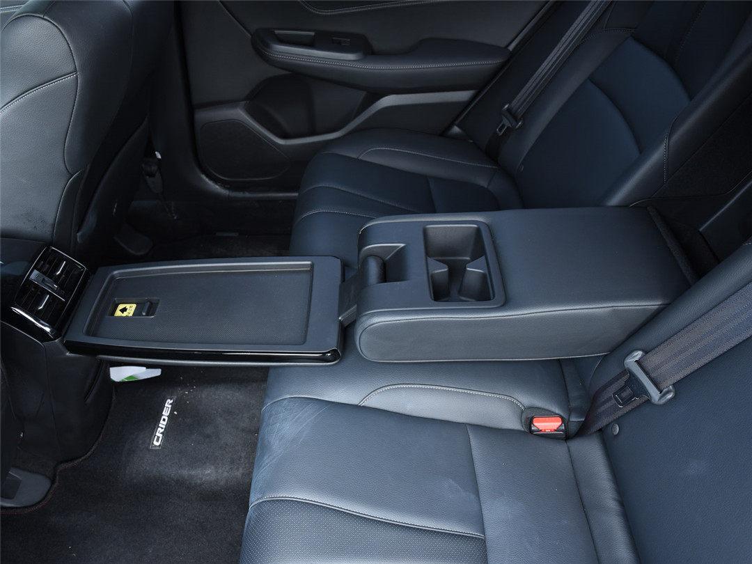 这还没完,巧妙的双层后排中央扶手,上层结构向下放倒正好与前排扶手紧密相连,可形成一体化的桌板,拓展空间是基本要求,更甚者是给后排乘员营造出一种乘坐豪华四座D级车的氛围。