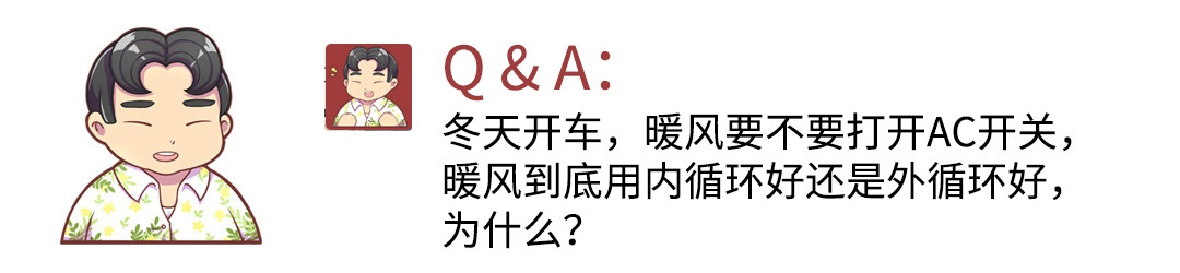这个问题要分为两个小问题,就是在冬天开车,一是要不要打开AC开关?二是暖风是用内循环还是外循环好?