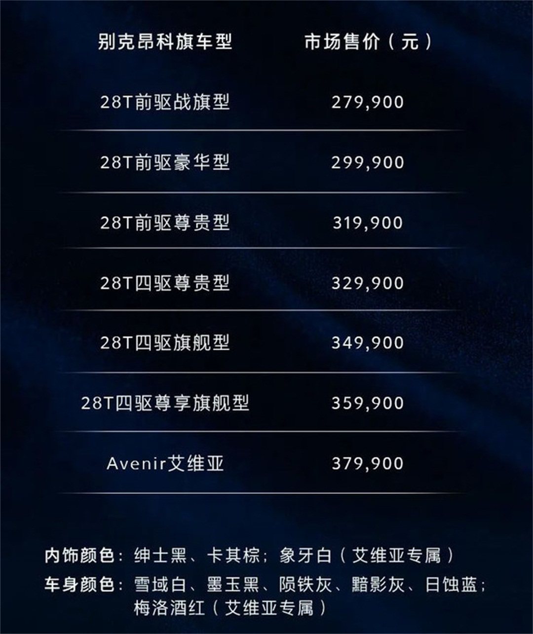 9月10日,上汽通用汽车别克品牌宣布,将推出别克昂科旗28T前驱战旗型,新车售价为27.99万元,随着新车型的推出,别克昂科旗入门价格进一步下探。28T前驱战旗型虽然是作为入门版车型,但与中高配车型一致,其配备了8英寸高清触控屏,搭载了别克eConnect只能互联科技,支持远程升级、Super ID超级账号、车载APP互联应用以及iBuick APP手机应用等功能,不仅如此,还提供每年100G“OnStar安吉星4G车联应用终身免费流量”服务。动力部分,新车搭载了2.0T可变缸涡轮增压发动机,最大功率174kW,最大扭矩350N·m,与其相匹配的是一台9速HYDRA-MATIC智能变速箱,综合工况油耗最低能够控制到7.4L/100km。另外,别克昂科旗还全系新增了步入式电动踏板选装包,上下车时自动弹出,提供了更便利的用车体验。