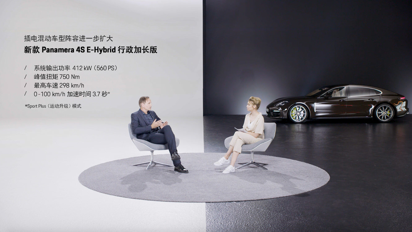 Panamera 4S E-Hybrid车型搭载2.9L双涡轮增压发动机加电机,系统综合最大功率560马力,峰值扭矩750牛·米。