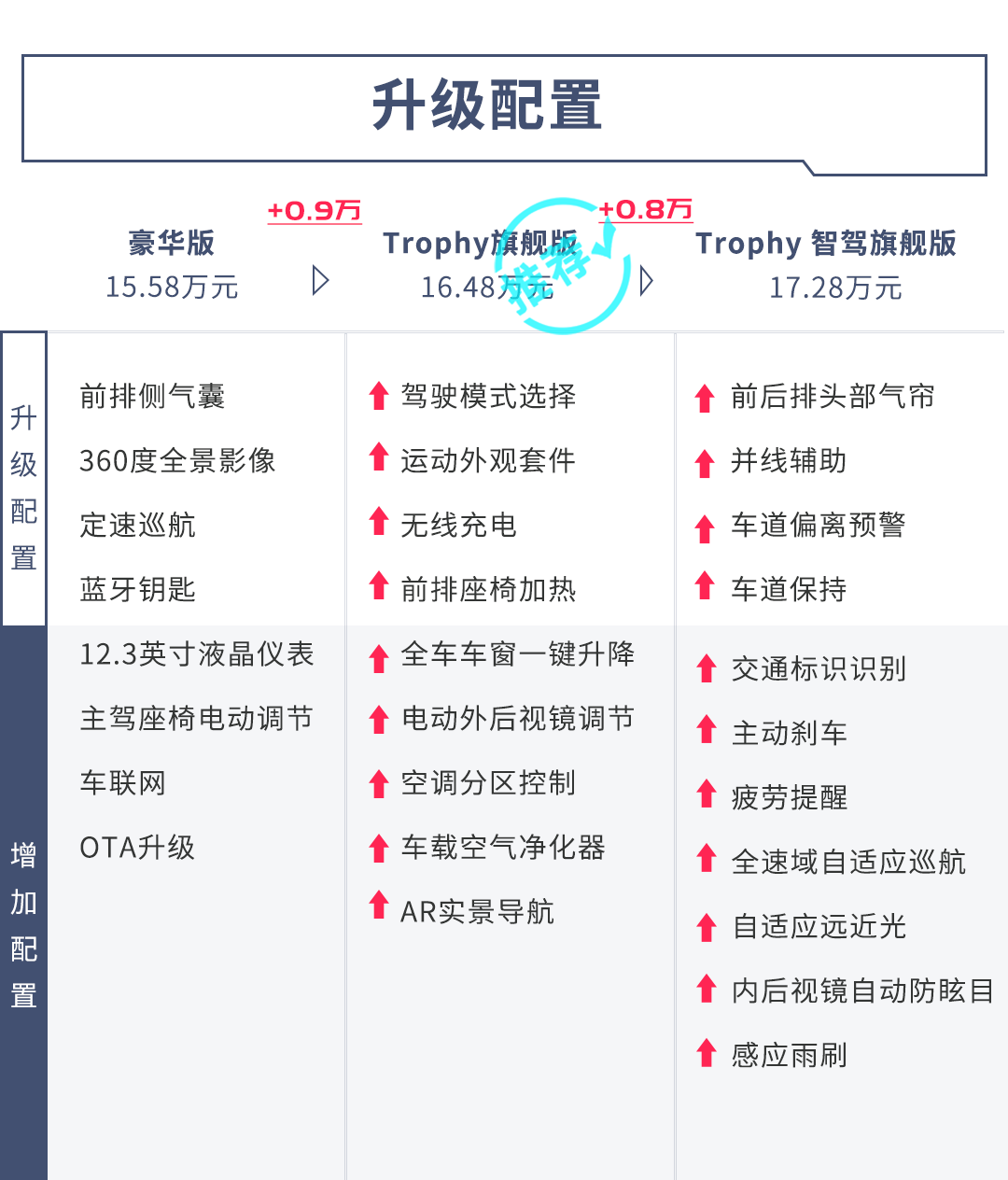 第三代名爵6 PHEV共推出了4款车型,售价为14.58-17.28万,当前购买名爵6 PHEV车型还能享受超能先享价,全系售价优惠后为13.98-16.68万,前6666名购车用户还享有新零售专享权益。
